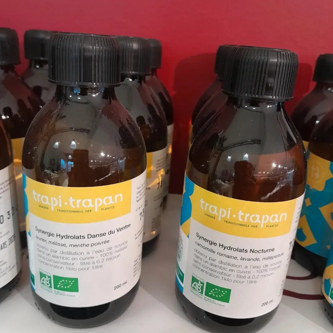 Elle vous propose une riche gamme Bio en tisanes, mélanges aromatiques, macérats huileux, huiles essentielles et hydrolats obtenus par distillation dans un alambic en cuivre, avec l'eau de source de la vallée.