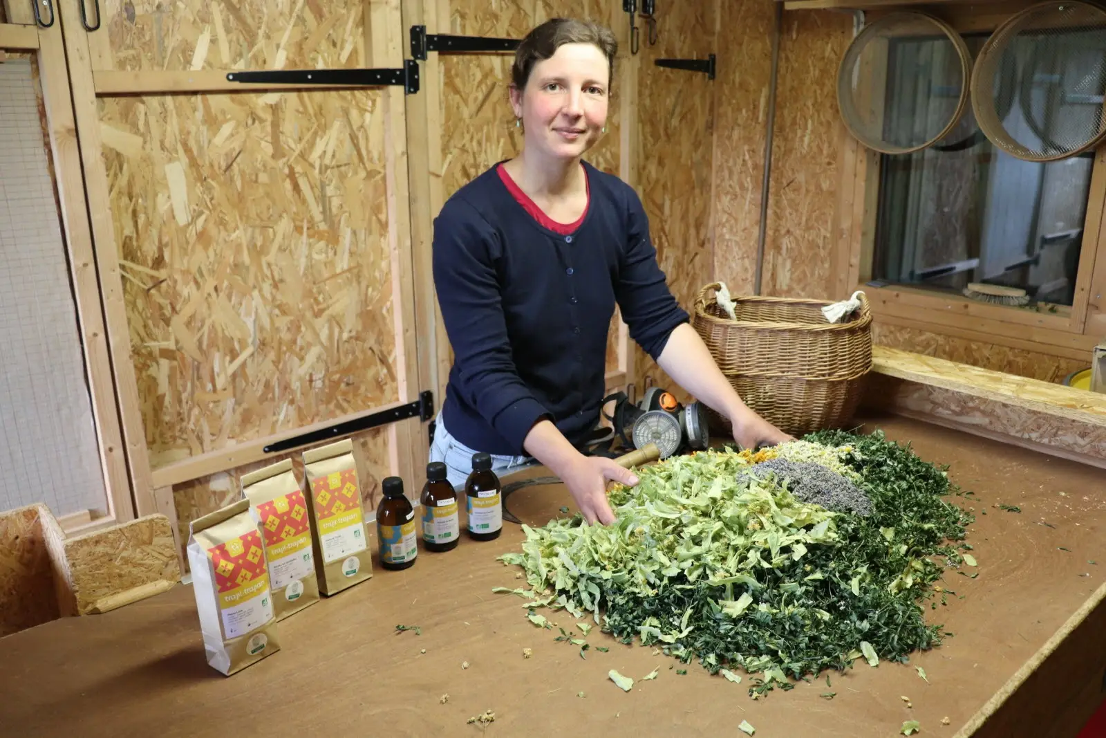 A Gouloux, Marie, herboriste, cultive et récolte les plantes aromatiques et médicinales.